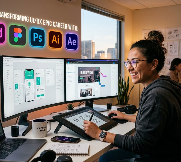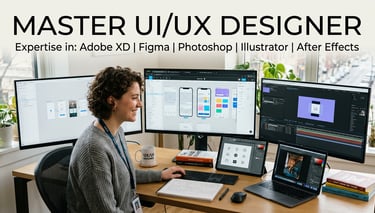 Our industry-ready training doesn't just teach design; it builds your future. Master the integrated workflow of Illustrator, Photoshop, and After Effects to create UI/UX projects that stand out to top recruiters in London, Dubai, and the USA.